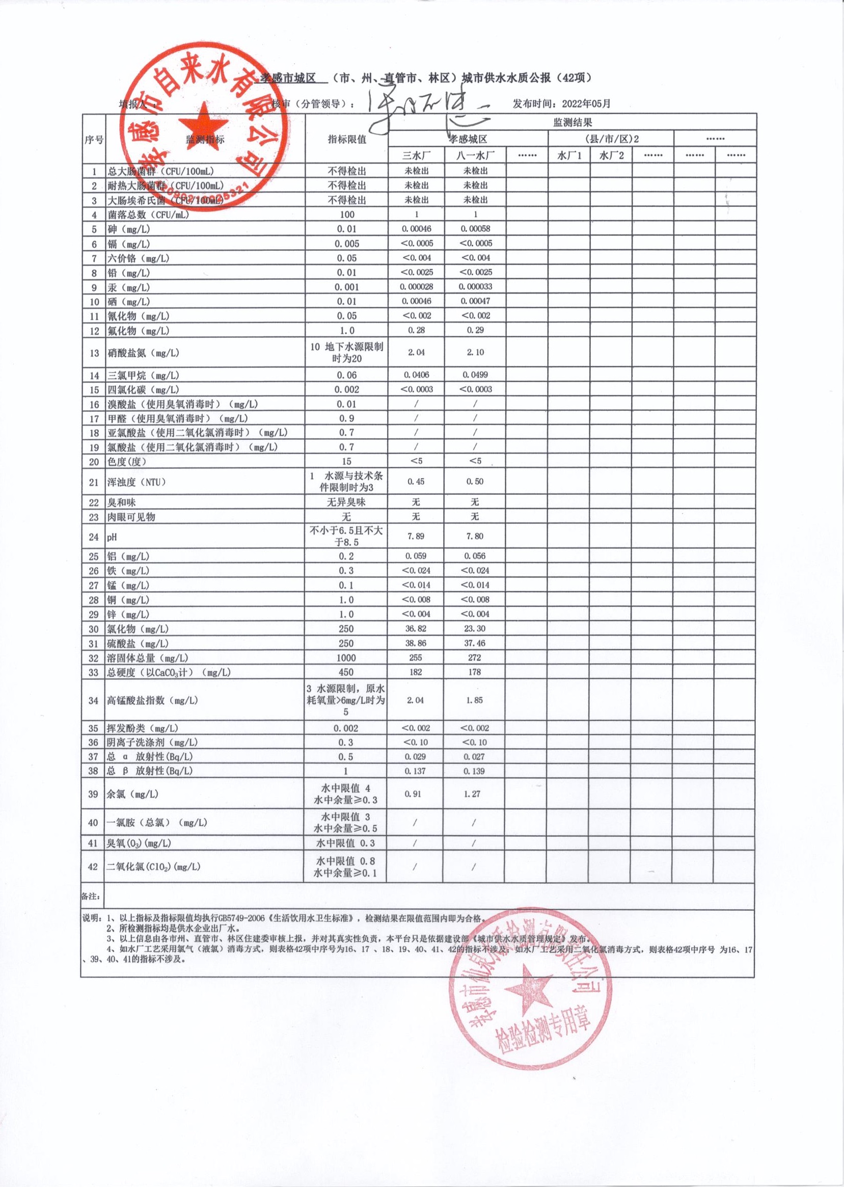 2022年5月水質(zhì)報告