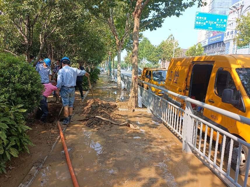 接到通知后,公司運(yùn)維部搶修人員迅速趕往現(xiàn)場進(jìn)行勘察,通過精準(zhǔn)定位鎖定了漏點(diǎn),并制定了搶修方案。快速挖開路面,經(jīng)排水、挖掘、清理后,搶修人員對此處破損的DN300供水管展開了搶修。他們采用“哈夫節(jié)”包接方式,將新舊管道接口成功連接。截至當(dāng)天下午3時,經(jīng)過7個小時持續(xù)不間斷奮戰(zhàn),漏水供水管道搶修工作結(jié)束,經(jīng)管壓調(diào)試后恢復(fù)正常供水。