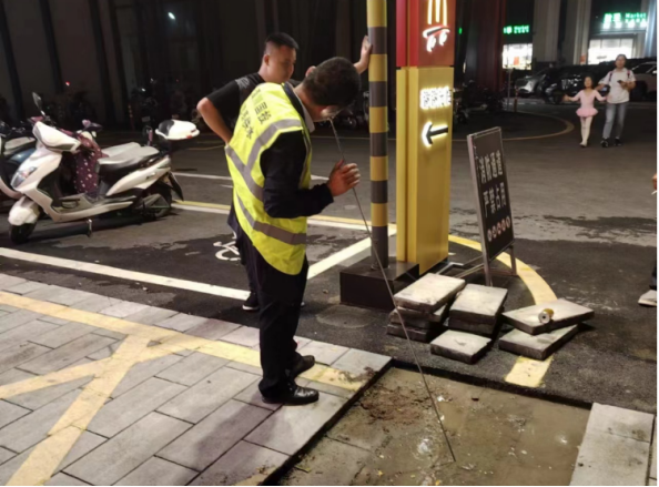 7月2日下午5點左右,公司客服熱線接到用戶反映,北京路民邦熙公館小區突然停水。客戶服務部工作人員第一時間來到現場,經現場勘查發現,小區進水管道漏水,初步懷疑是內部管道存在漏點,造成停水。