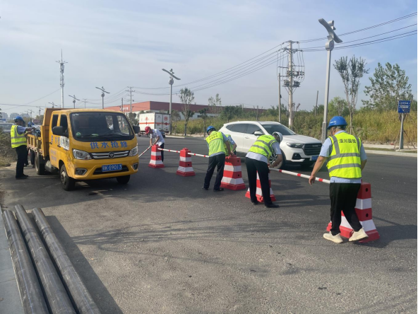 為確保城市供水安全穩定,提高應對供水管網突發事件的能力,9月26日上午,公司開展供水管網突發事件應急演練。本次演練模擬場景為航空路DN400PE主管線突然爆管,經現場研判,出動應急搶險工具車5輛、挖掘機1臺,灑水車1輛,9個職能部門共計30余人聯動參與。