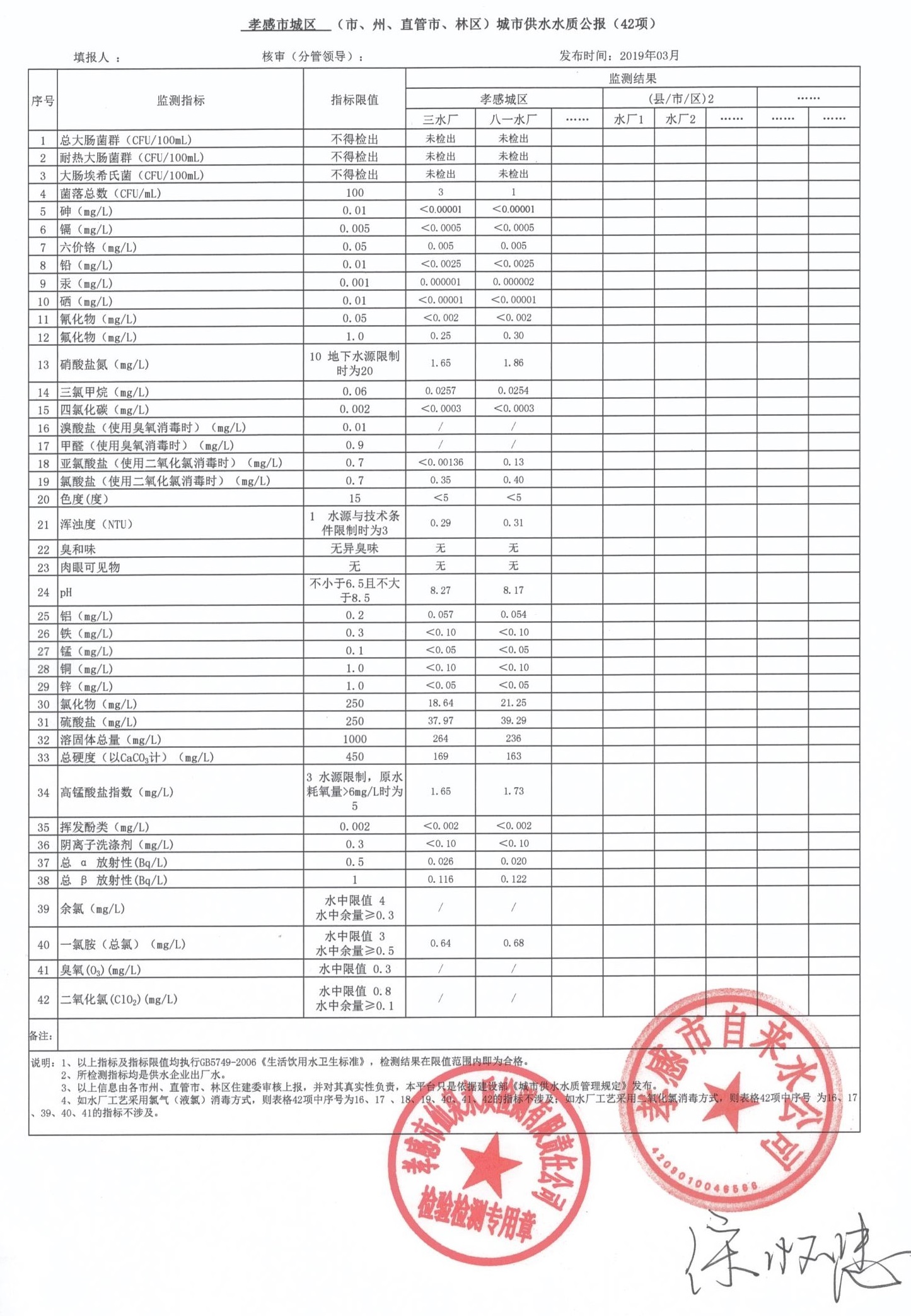 2019年3月水質(zhì)報(bào)告