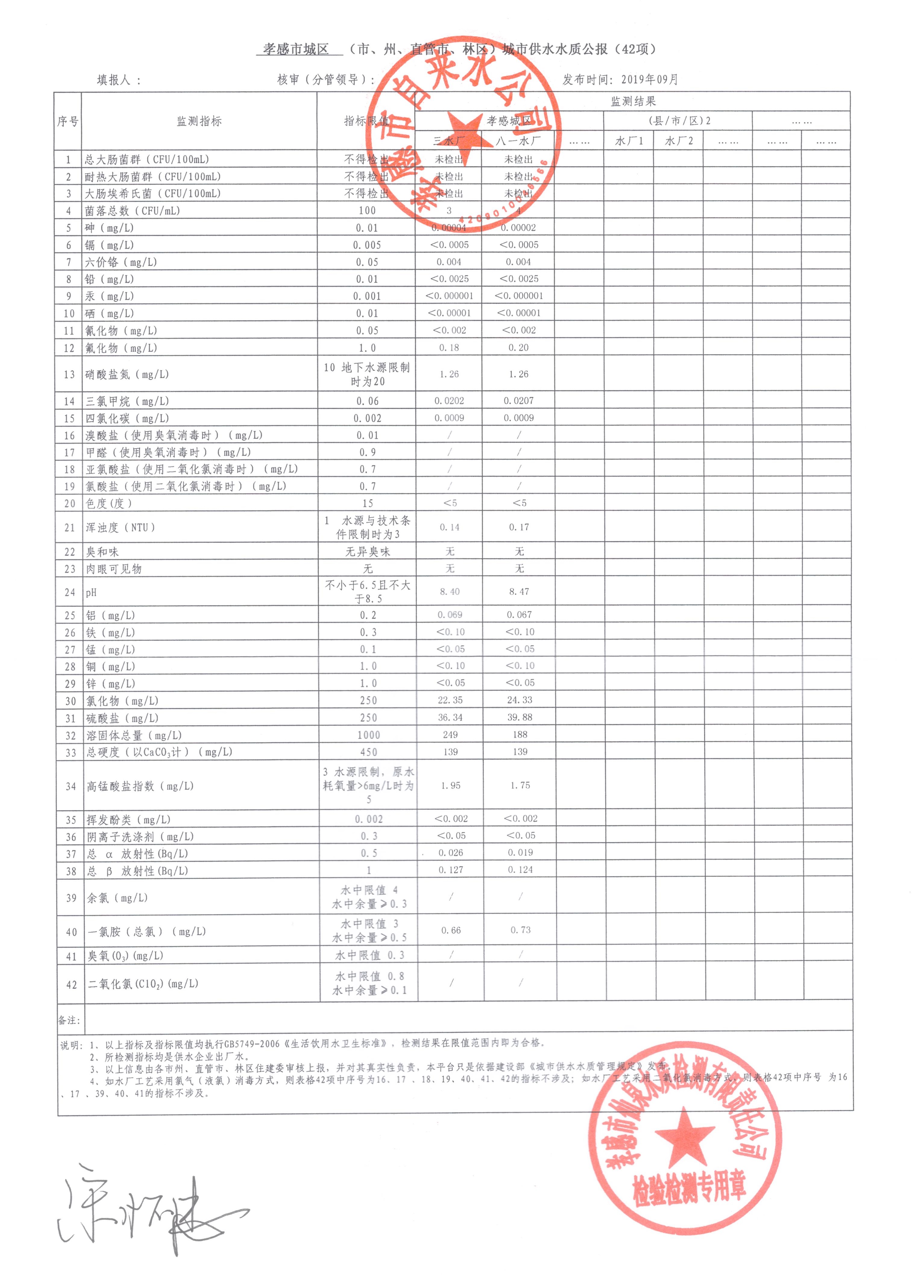 2019年9月水質報告