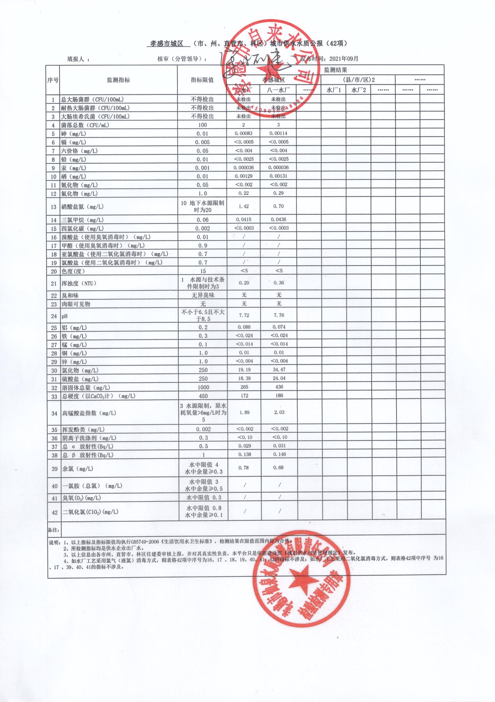 2021年9月水質報告