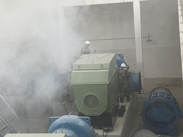 上午9點30分,21名民兵著訓練服在隊長王冠群的口令下整隊稍息,隨后跑步前往三水廠絮凝池,對水池進行防空襲前的偽裝防護。除此次預演之外,11月10日,公司應急搶險搶修專業隊在三水廠供水泵房還進行了空襲后設備受損的快速搶修演練。